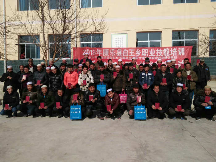 1月9日,在景古镇举行了康乐县2018年精准扶贫劳动力培训启动仪。截止2月4日,已有胭脂镇八龙村掐丝珐琅画、草滩乡那那沟掐丝珐琅画、景古镇掐丝珐琅画、苏集镇马寨村电焊及牛肉拉面、附城镇高林湾电焊、五户乡电焊及牛肉拉面、鸣鹿乡牛肉拉面、八松乡电焊等九个培训班结业,培训群众362人(其中建档立卡户322人)。