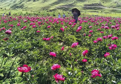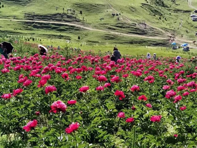 康乐是“花儿”的故乡,也是牡丹的重要原产地之一。鸣关牡丹谷位于康乐县鸣鹿乡,距县城26公里,环境优美,气候宜人,生态环境良好。鸣鹿牡丹谷种植的千亩芍药具有生长旺盛、品种繁多、花色齐全、花期长、规模大的特点,花期为每年的6、7、8月,如今正是百花盛开的季节,牡丹谷里繁花似锦、姹紫嫣红,吸引众多游客前来休闲赏花。